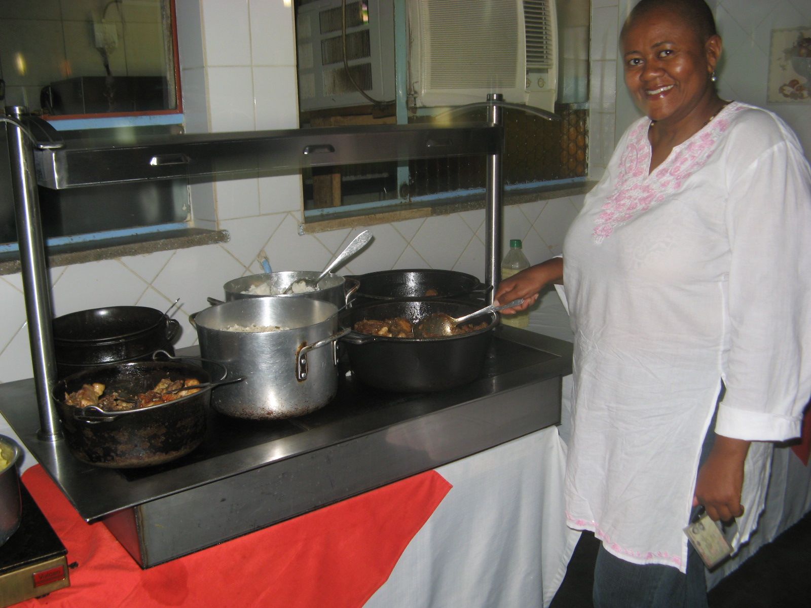While we and many school children were in the museum, a huge thunderstorm hit, with hail and heavy rain pounding the ceiling and the windows. At closing time of 5 p.m., Mda and I drove around to see the former homes of Walter Sisulu and Nelson Mandela, the home of Soweto TV (a community-based, television station that launched to years ago), located between a church and a primary school, and ended up at a famous bistro (in their rougher incarnations called shebeens in the townships), Wandie’s, for a cold drink and reflection. The same airline magazine for March 2010 writes, “Chef-patron Wandi Ndala is the granddaddy of township destination-dining, and his tavern-style eatery is still one of the best in the business.”